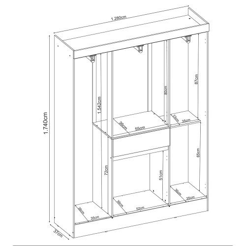 Dimensões (a x L x c): 174 x 128 x 37 cm (Produto Montado)