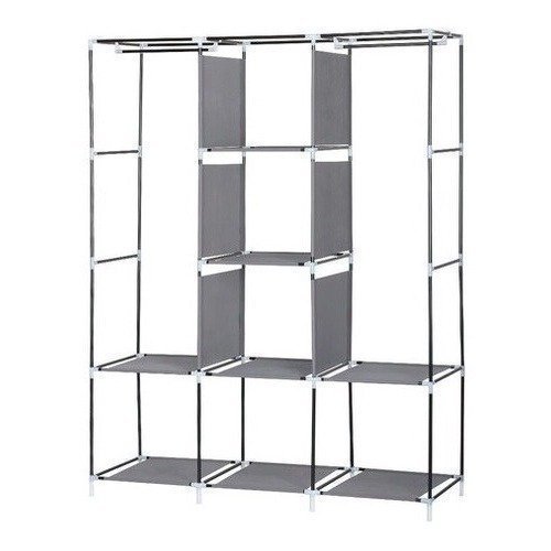 Armário prático de tecido dobrável com três divisões verticais, possui dois grandes espaços com cabideiro e 8 prateleiras. Possui cortina de rolo e abre e fecha com fechamento. Ele é projetado em tecido respirável de excelente qualidade e muito fácil de limpar. Também é fácil de montar. Uma opção útil e prática para manter suas roupas organizadas.