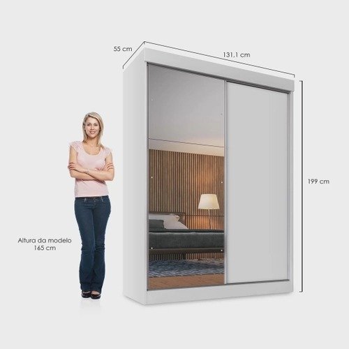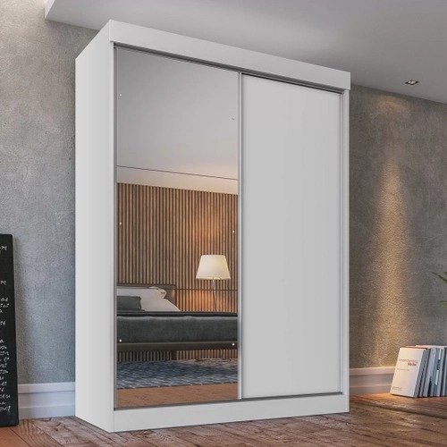 Guarda-Roupa Solteiro 2 Portas de Correr 1 Porta com Espelho 2 Gavetas é composto por uma porta com espelho dividido em três painéis e uma porta em mdp. é um armário eficiente, possui múltiplas repartições para acomodar roupas e objetos, cabideiros e puxadores em alumínio, com o puxador acompanhando a altura da porta, guias superiores com molas, rodízios metálicos com roldanas em nylon e trilhos de alumínio que proporcionam melhor deslize das portas, 4 gavetas internas com corrediças metálicas, produzido em mdp com acabamento em pintura uv, proporcionando maior resistência e durabilidade. Os materiais utilizados são de primeira qualidade e respeitam o meio ambiente.