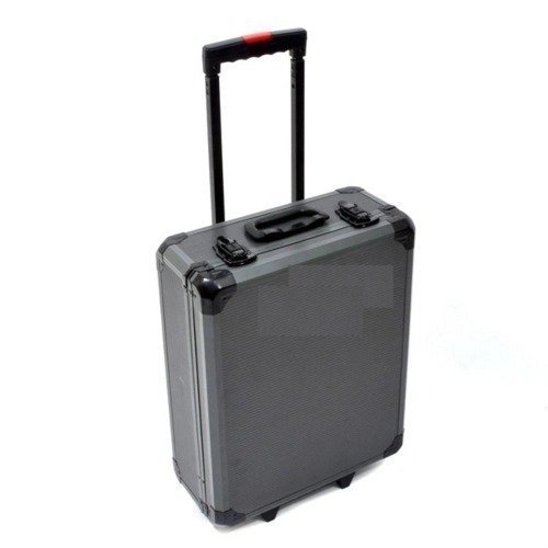 Nosso kit de ferramentas final vem fornecido em uma elegante caixa de vôo em alumínio, com cada compartimento dedicado a um tipo de ferramenta específico para facilitar a consulta. A caixa fornecida também possui uma alça ajustável, um mecanismo de bloqueio resistente e rodas de movimento livre para facilitar a portabilidade.