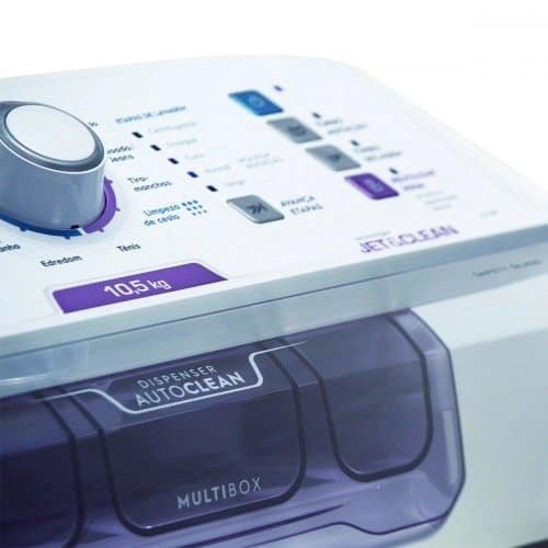 Dispenser autolimpante: ato dágua pressurizada que dissolve completamente o produto, evitando manchas nas roupas e mantendo o dispenser sempre limpo.