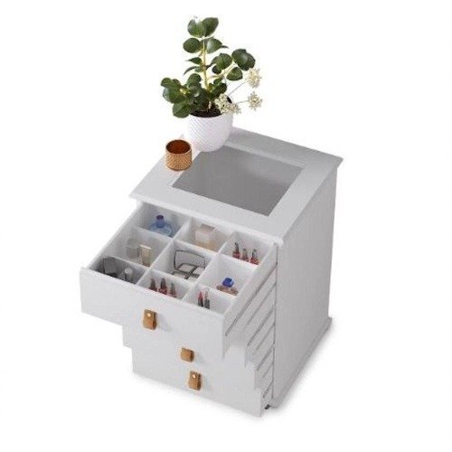 A Mesa de Cabeceira Rossi com vidro contém 4 gavetas com corrediça telescópica, proporcionando abertura 100% facilitando a melhor acomodação dos pertences, sendo uma delas com colmeia. Este produto pode ser usado como mesa de cabeceira ou mesa de maquiagem.