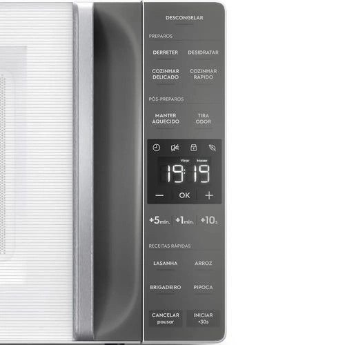 – Descongelamento Assistido: Indica, por meio de um aviso sonoro e luminoso, o momento certo de virar ou mexer os alimentos, garantindo um resultado mais uniforme.