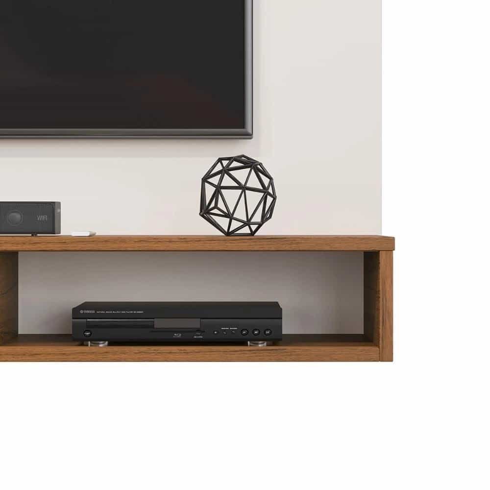 O Painel Bento é uma ótima opção para agregar beleza ao seu lar. Ideal para ambientes compactos, este painel pode ser a estrela da sala de estar ou até mesmo dormitórios e áreas de lazer, sendo um produto totalmente versátil, este produto foi desenvolvido para suportar TV de até 60 Polegadas. A resistência do painel Bento é de até 40Kg, então fique de olho na hora de comprar sua tv, produto necessita de fixação na parede. Aproveite suas prateleiras laterais para dispor seus objetos de decoração, que ficarão em destaque já que o painel atrás das prateleiras tem lindos frisos decorativos. Um detalhe super charmoso deste painel é seu nicho inferior que ocupa toda a largura do móvel. Este produto conta com porta deslizante, com um espaço mais escondido para guardar seus objetos de forma prática e organizada. Este painel é produzido em mdf e mdp, que são chapas de madeira reconstituída advindas de reflorestamento.