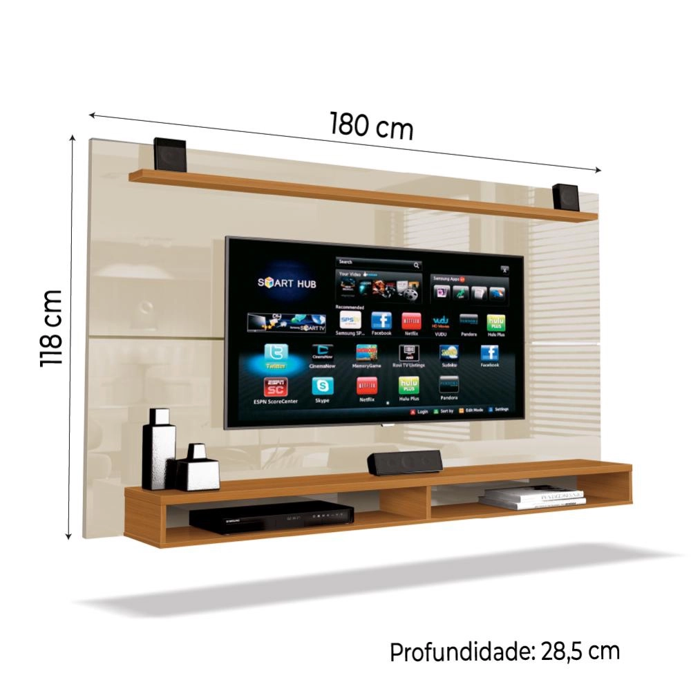 | Modelo | Painel Para TV Até 65 Polegadas Com Prateleira 1,80m Max Cedro/Off White |