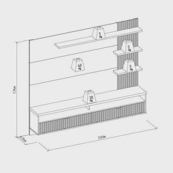 – Dimensões: 203 cm (largura) x 174 cm (altura) x 35 cm (profundidade)