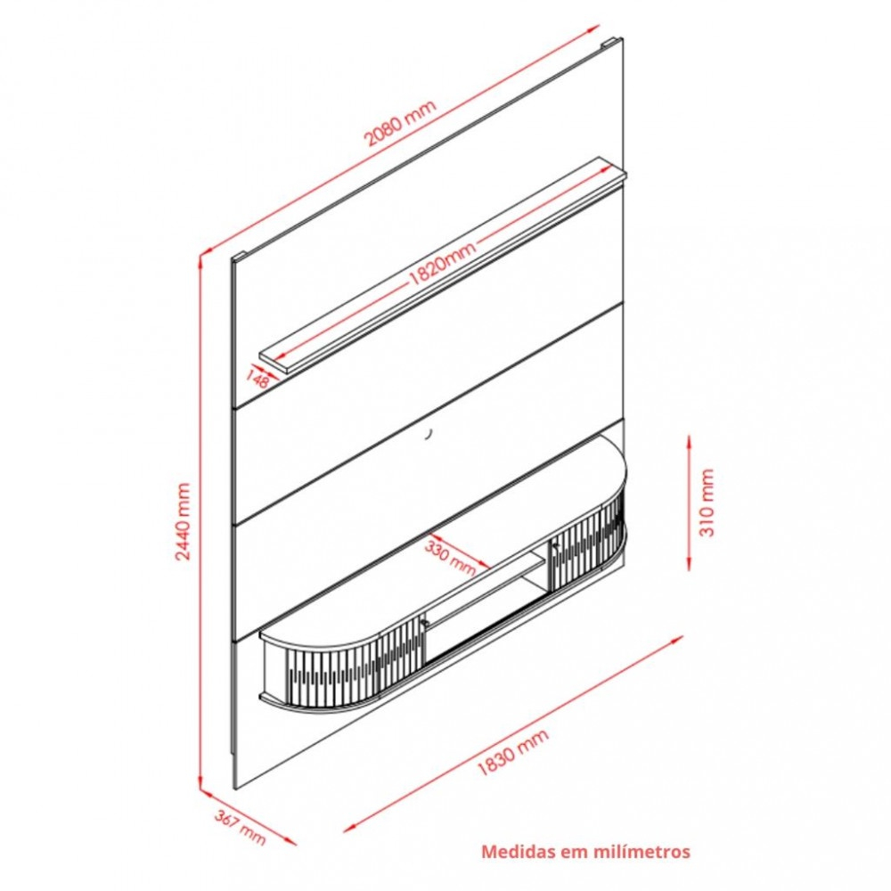 O Painel para TV da Bugati Madetec é um móvel elegante e funcional, projetado para TVs de até 75 polegadas e com capacidade de peso de até 53 kg. Feito em mdp, inclui dois portas flexíveis e duas prateleiras para armazenar eletrônicos e acessórios. Os puxadores cromados em poliestireno e o sistema de fixação Girofix garantem segurança e um design sofisticado. Com espessuras variando entre 12, 15 e 25 mm, o painel possui detalhes curvos e acabamento em hot stamping, ideal para ambientes modernos e clean.