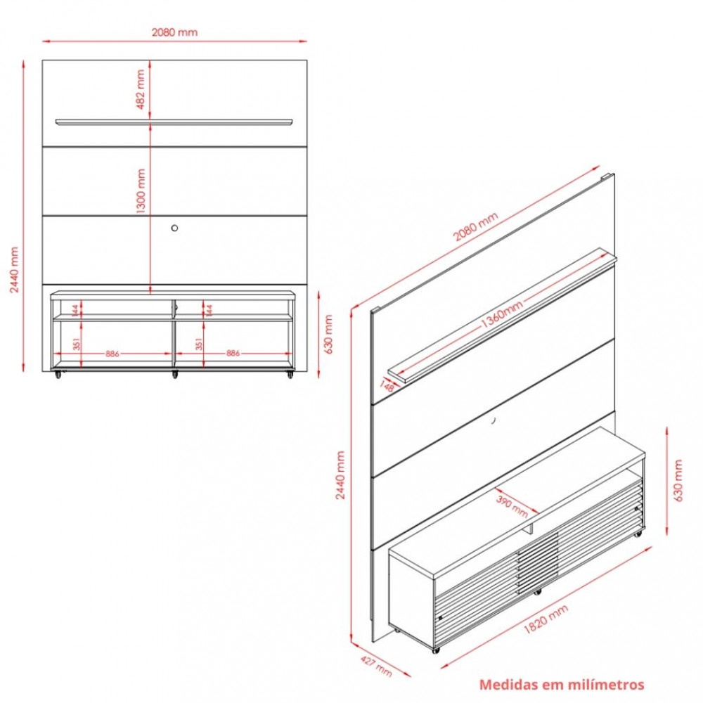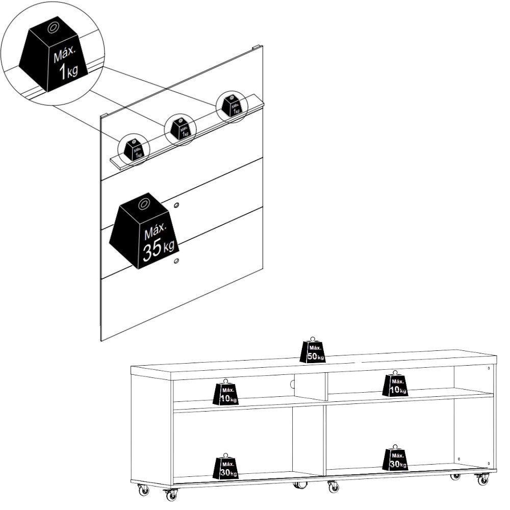 Painel suporta TV de até 75 polegadas