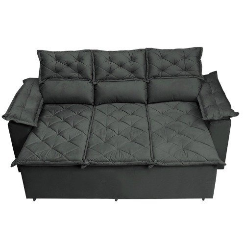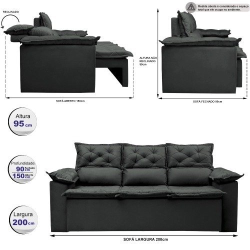 Sofá 3 Lugares Retrátil e Reclinável Cama inBox Compact 2,00m Velusoft Cinza