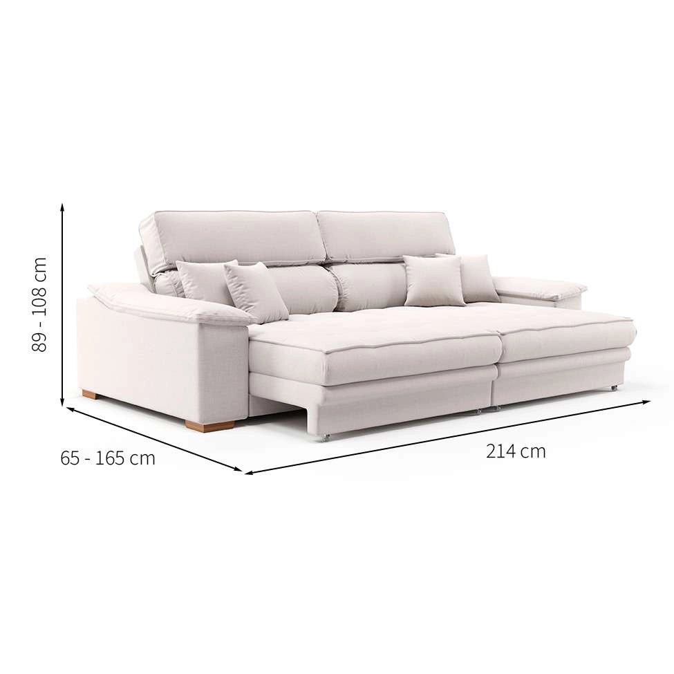 | DimenAproxEmbaProduto | Fechado: Altura: 108 cm Largura: 214 cm Profundidade: 65 cm / Aberto: Altura: 89 cm Largura: 214 cm Profundidade: 165 cm |