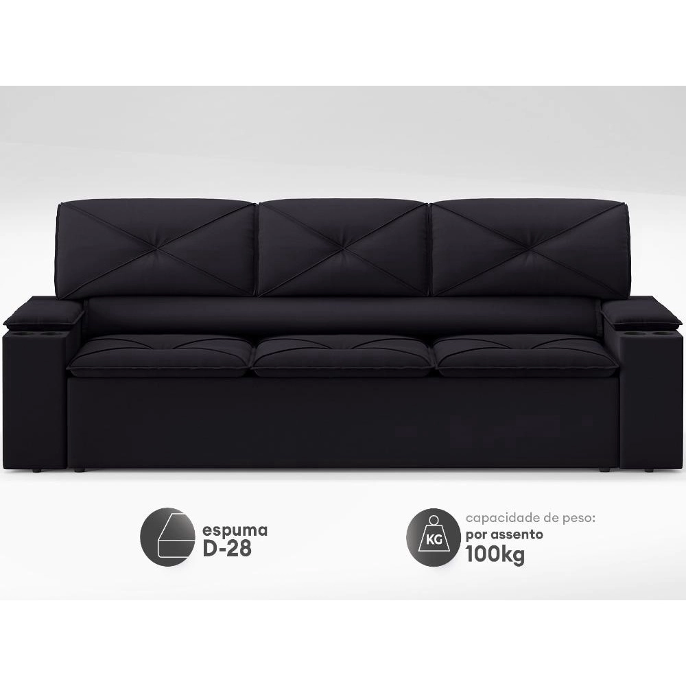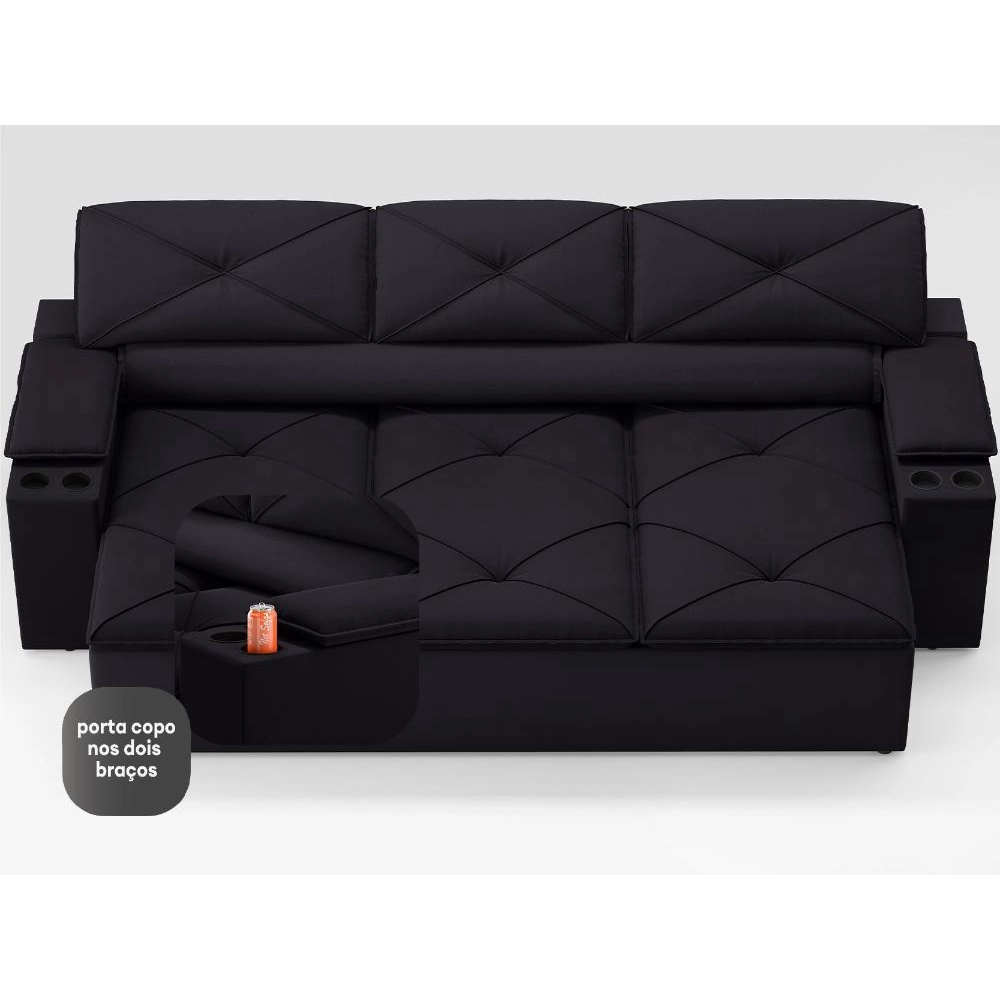 Sofá com Porta Copos Retrátil e Reclinável Pop 2,05m Velosuede Preto – netsofas