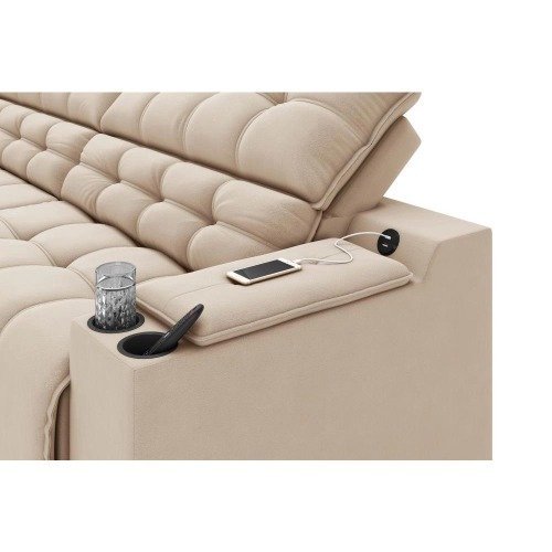 Sofá Connect Premium 2,00m – Sofisticação e Conforto para sua CasaO Sofá Connect Premium é a peça que faltava para transformar sua sala de estar em um oásis de conforto e elegância. Este produto excepcional, produzido pela renomada marca xflex sofás, combina estilo contemporâneo com funcionalidade excepcional, proporcionando momentos inesquecíveis de relaxamento e entretenimento. Características Principais: Conforto Incomparável: O sofá é construído com madeira de Eucalipto e preenchido com uma combinação de fibra e flocos, além de uma espuma D28 de alta qualidade que oferece um suporte luxuoso para seu corpo. Cada detalhe é pensado para garantir o máximo conforto. Versatilidade Retrátil/Reclinável: Com 4 estágios de reclinação, este sofá se adapta perfeitamente às suas necessidades. Quando desejar ganhar espaço na sala, basta recolher o assento; quando a ideia é relaxar, estenda-o para aproveitar todo o conforto oferecido. Comodidades Modernas: Os dois porta copos integrados nos braços proporcionam um toque de sofisticação e praticidade, mantendo suas bebidas sempre à mão. A entrada USB embutida permite carregar seus dispositivos eletrônicos enquanto desfruta do seu tempo de lazer.design Elegante: Este sofá não é apenas funcional, mas também um destaque de design. Disponível na cor Suede Capuccino e com seu design charmoso, ele eleva a decoração da sua casa, tornando o ambiente mais aconchegante e sofisticado. Um convite irresistível para reunir amigos e familiares. Especificações Técnicas: Assento: Espuma D28 para máximo conforto. Encosto: Removível com fibra siliconada. Braço: Espuma D18 com porta copos integrados. Corrediça: Tubular. Pés: pvc. Estrutura: Madeira (Eucalipto/OSB) para durabilidade. Comprimento: 200 cm. Altura: 96 cm. Profundidade: 96 cm (abertura de 150 cm). Pillow top: Não. Peso aproximado: 60kg. Montagem Fácil e Garantia: A montagem é simples, exigindo apenas a instalação do encosto. Não é necessário um montador especializado, qualquer pessoa pode fazê-lo. O sofá Connect Premium vem com uma garantia de 3 meses contra defeitos de fabricação, a contar da data de recebimento. Cuidados e Recomendações: Para manter a beleza e durabilidade do sofá, siga nossas recomendações de limpeza e manutenção. Evite exposição direta ao sol para preservar a cor do tecido. Observações Importantes: A tonalidade do produto pode variar ligeiramente em relação à imagem exibida. Montagem/instalação do produto não estão incluídas. Objetos decorativos nas fotos não estão inclusos. Certifique-se de que o produto cabe no local de uso. Cores podem variar devido às configurações do monitor/celular.